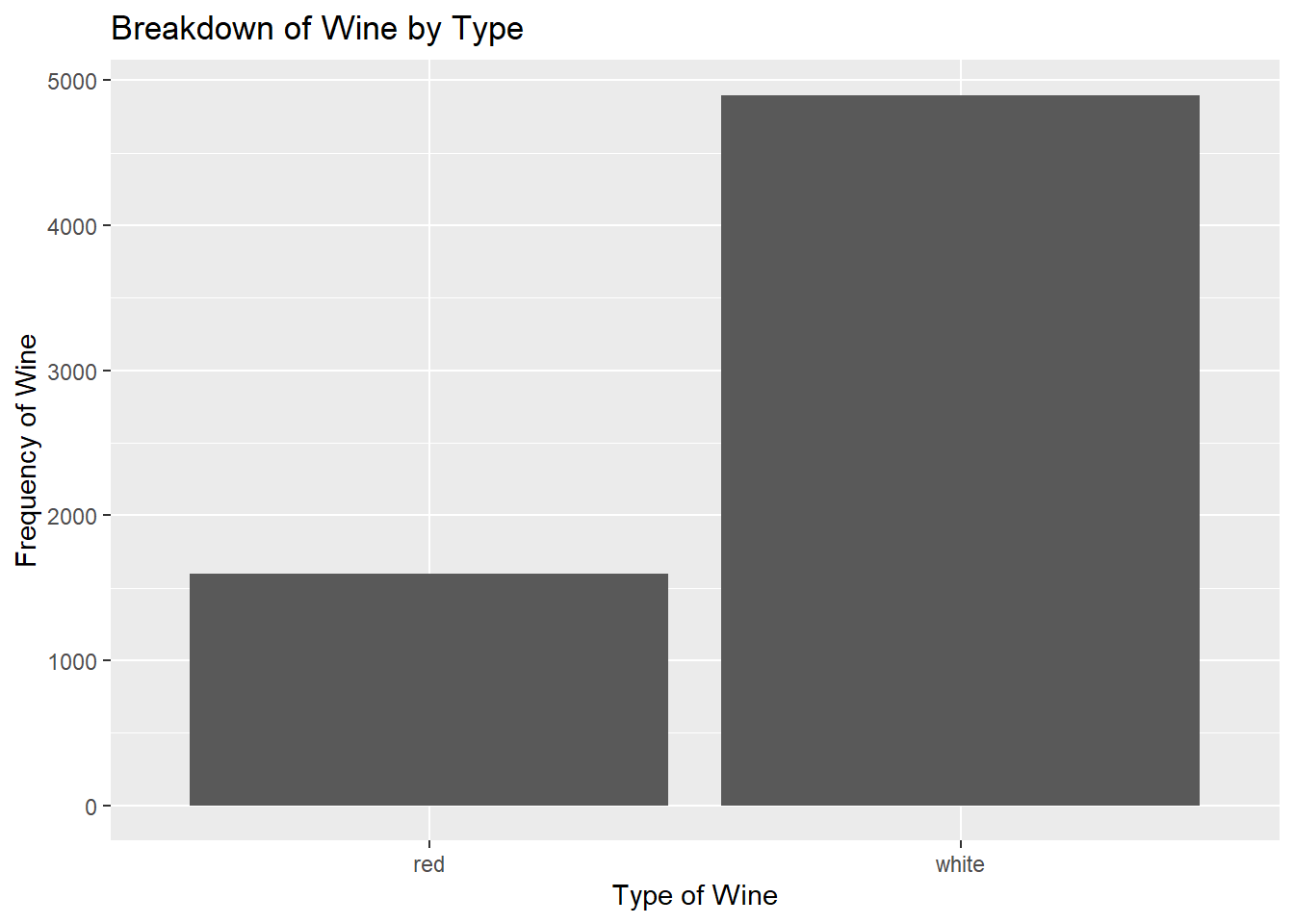 wine <- read_csv("data/wine_quality.csv")Quick overview of the type of wine in data set.