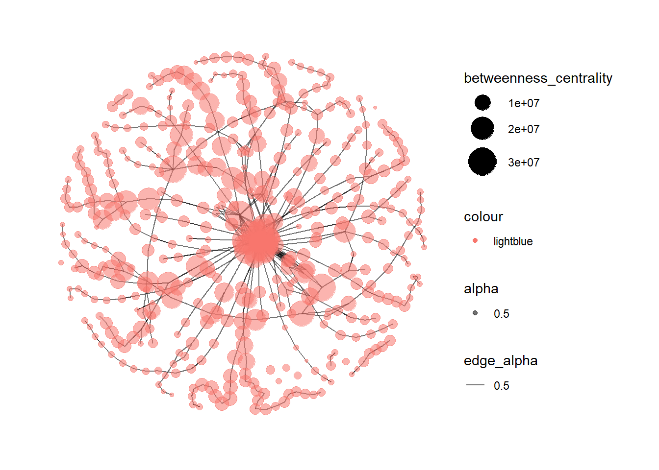 geom_node_point(aes(size = betweenness_centrality, color = "lightblue",